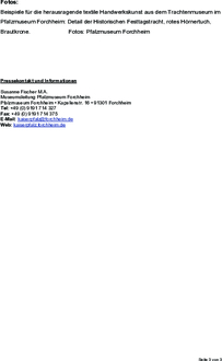 Mittlerweile ist der Vertrag des Pfalzmuseums mit der Firma Google unterzeichnet und das Museumsteam ist dabei, eine „Story“ rund um das Trachtenmuseum im Pfalzmuseum Forchheim zu entwickeln. „Das Projekt ist eine einmalige Werbung für uns und alle beteiligten Museen, weil es international aufrufbar ist und die Texte auch in Deutsch und Englisch sein werden“, sagt Susanne Fischer. Der Mitinitiator, Dr. Martin Spantig von der Landesstelle nennt es einen „Ritterschlag für die beteiligten Museen“. „Crafted in Bavaria“ wird v.a. durch Bilder, Filme und knappe, niederschwellige Texte zugänglich sein, die Inhalte werden durch „Storytelling“ vermittelt“ erklärt Fischer.