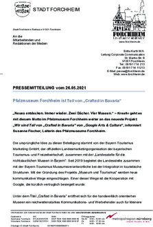Stadt Forchheim. „Neues entdecken. Immer wieder. Zwei Dächer. Vier Museen.“ - Kreativ geht es mit diesem Motto im Pfalzmuseum Forchheim weiter an das neueste Projekt: „Wir sind Teil von „Crafted in Bavaria“ von „Google Arts & Culture“, informiert Susanne Fischer, Leiterin des Pfalzmuseums Forchheim.