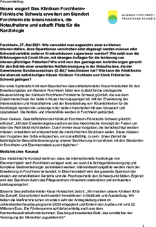 Forcheim (Klinikum).Forchheim, 27. Mai 2021- Wie vermeidet man angesichts einer zu kleinen Intensivstation, dass Operationen verschoben oder abgesagt werden müssen oder Schwerstverletzte anderen Krankenhäusern zugewiesen werden? Wie setzt man die Erfahrungen mit Covid-19 um, mit strengen Auflagen für die Isolierung von intensivpflichtigen Patienten? Wie wird man den gestiegenen Anforderungen gerecht für den Betrieb einer erweiterten Notfallversorgung in der Notaufnahme, die der Gemeinsame Bundesausschuss (G-BA)* beschlossen hat? Wie kann die Klinikfusion der ehemals selbständigen Häuser Klinikum Forchheim und Klinik Fränkische- Schweiz gelingen?