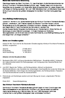 Oberbürgermeister der Stadt Forchheim, Dr. Uwe Kirschstein, Aufsichtsratsvorsitzender der Klinikum Forchheim-Fränkische Schweiz gGmbH, sagt: "Klasse, dass durch die bauliche Vergrößerung die neuesten und modernsten Behandlungsmethoden für unsere Bürgerinnen und Bürger zur Verfügung stehen. Mit rund 1.000 Mitarbeiterinnen und Mitarbeitern spielt das Klinikum auch als einer der größten Arbeitgeber für die Stadt Forchheim eine gewichtige Rolle."