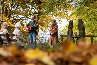 Die Nähe zu vertrauten Menschen - hier beim Besuch im Bestattungswald - hilft, mit Tod und Trauer fertig zu werden. Das zeigt eine aktuelle Studie.