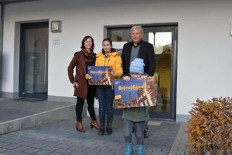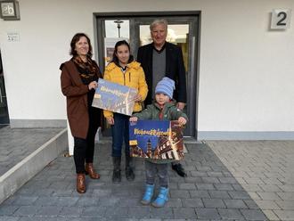 (v.l.) vorne Johanna (11 Jahre alt) und Bruder Max (4), Lisa Hümmer, Vorsitzende des Kinderschutzbundes, und Dr. Engelbert Heimerl, Präsident des Rotary-Clubs Forchheim