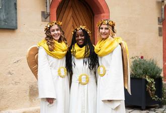 Um die Gewinner auch persönlich benachrichtigen zu können, wird jedes Los personalisiert. Aus Hygienegründen bittet deswegen die Tourist-Information, einen eigenen Stift zum Kauf der Lose mitzubringen. Den Erlös aus dem Losverkauf verwendet der Veranstalter, der Heimatverein der Stadt Forchheim, unter anderem für Zuschüsse kultureller Projekte sowie für verschiedene wohltätige Zwecke. Bildtext: Die drei Forchheimer Weihnachtsengel ziehen allabendlich die Gewinner.