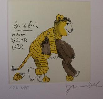 Stadt Forchheim. Er ist der Urheber der Tigerente, liefert Post für den Tiger und weiß „Oh wie schön ist Panama“: Der Künstler Horst Eckert alias Janosch, der vor allem für seine illustrierten Kindergeschichten bekannt ist. Von Janosch kommt in diesem Jahr die Jahresgabe des Förderkreises Kaiserpfalz. Interessierte können dabei aus bekannt fröhlichen Farbradierungen mit drei verschiedenen Motiven wählen.