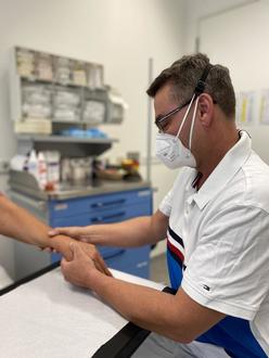 Maximilian Baier bei der Behandlung einer Hand. Quelle: Klinikum Forchheim-Fränkische Schweiz