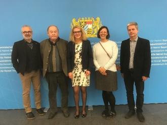 Bayerisches Staatsministerium der Finanzen und für Heimat - Von links: Erik Buchholz, Dr. Dieter George, Barbora Vĕtrovska, Christina Mainusch (Geschäftsführerin der Sudetendeutschen Landsmannschaft Bayern) und Jakob Dĕd im bayerischen Heimatministerium in Nürnberg. Foto: Bayerisches Staatsministerium der Finanzen und für Heimat