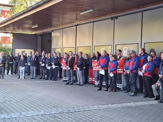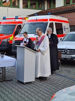 Gerhard Hoch (Notfallseelsorger kath. Dekanat Forchheim) bat Gott um seinen Segen für Geräte und Fahrzeuge, sowie die Menschen welche sie bedienen werden. Das besprengen mit Weihwasser als symbolisches Zeichen bildete mit dem Schlusssegen und Lied den Abschluss der Feierlichkeit.