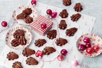 Kuvertüre grob zerkleinern und im Wasserbad bei schwacher Hitze schmelzen. Die Bärentatzen zur Hälfte in die Kuvertüre tauchen, auf einen Bogen Backpapier legen und die Kuvertüre fest werden lassen.