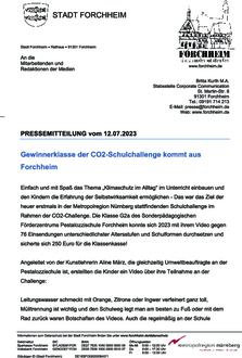 Seit ein paar Jahren organisiert eine Gruppe von Klimaschutzmanager*innen der Metropolregion während der Fastenzeit die CO2-Challenge für Erwachsene, die Initiative erfreut sich wachsender Beliebtheit. Da die Einsendung von Fotos, Videos und Collagen für das angeschlossene Gewinnspiel auch immer mehr Beiträge von Schulklassen enthielten, war dem Organisationsteam, dem auch die Forchheimer Klimaschutzmanagerin Elisa Rittmeier angehört, klar, dass eine gesonderte Schulchallenge her muss, um dem großen Engagement der Kinder und Jugendlichen gerecht zu werden.
