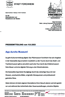 (Stadt Forchheim). So geht Kulturvermittlung digital: Das Pfalzmuseum Forchheim hat sein Angebot in der Kaiserpfalz-App erweitert: Zusätzlich zu den Touren durch das Stadt- und Trachtenmuseum gibt es ab sofort auch eine Tour durch das Erlebnismuseum Rote Mauer und eine digitale Führung zu den Wandmalereien. Die Kaiserpfalz-App bietet Rundgänge durch das vielseitige Haus mit vier Museen, anschauliche Bilder, originelle Hörsequenzen und professionell gedrehte Filme. Gäste können mit dem eigenen Smartphone ihren Besuch planen und sich gezielt vor und während des Aufenthalts über Dauerausstellungen, einzelne Objekte oder Events erkundigen und sich zu ausgewählten Objekten und Themen führen lassen. Hintergrundinformationen, zahlreichen Abbildungen und 3D Animationen sowie spannenden Audio- und Video-Highlights zu ausgewählten Objekten runden das Angebot ab. Und alles Wissenswerte für den Museumsbesuch, wie Öffnungszeiten, Eintrittspreise und Barrierefreiheit hält die App natürlich auch bereit. Die Kaiserpfalz-App ist sowohl in deutscher als auch in englischer Sprache im App Store und bei Google Play kostenlos abrufbar.