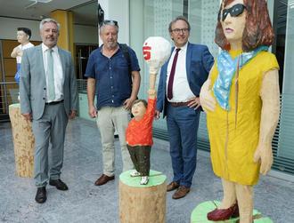 Die Kunstobjekte aus dem natürlichen und warmen Material Holz zieren fortan die Hauptstelle und sind Ausdruck der Vielfalt an Personen und Charakteren, mit denen wir alle tagtäglich in Kontakt treten: Personen mit Ecken und Kanten. Die acht Figuren können während der Öffnungszeiten der Hauptstelle angeschaut werden: Die alte Dame mit Hund, die junge Dame, der Mann im Anzug, der Sportler und der Junge mit S-Luftballon auf der Empore, die sitzende Dame auf der roten Bank im Eingangsbereich sowie der Barista in der Testa Rossa caffèbar laden bei einem Rundgang durch die Hauptstelle der Sparkasse Forchheim zum Staunen und Schmunzeln ein.
