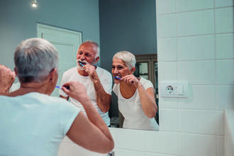 Darüber hinaus sorgt ein ausreichender Speichelfluss dafür, dass die Mineralstoffe auf die Zähne gebracht und Nahrungsreste aus dem Mundraum gespült werden. Anregen lässt er sich beispielsweise durch das Kauen von (zuckerfreiem) Kaugummi und ausreichendes Trinken – allerdings keine zucker- oder säurehaltigen Getränke wie Limonaden oder Fruchtsäfte. Zur gründlichen Mundhygiene gehört außerdem das Reinigen der Zahnzwischenräume mit Zahnseide oder einer Interdentalbürste. Gehen Sie regelmäßig zu den Vorsorgeuntersuchungen beim Zahnarzt. So kann Karies früh genug entdeckt und behandelt werden.