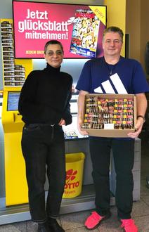 Forchheim (BRK-Pflegeheim am Königsbad). Die Betreuungskräfte im BRK Pflegeheim am Königsbad in Forchheim lassen sich immer wieder mal etwas besonderes für die dortigen Bewohner einfallen. Nun wurde für die fußballinteressierten Männer dort unter Leitung von Peter Krison eine Gruppe mit neun Bewohnern gegründet, in der über Fußball fachgesimpelt wird und die Ergebnisse der Bundesligaspiele vorausschauend getippt werden können. Das Besondere daran, die Teilnahme ist kostenlos, Dank Herrn Krison. Wer die meisten Spielergebnisse richtig getippt hat, erhält von Herrn Krison einen kleinen Preis. Der jeweilige Spielschein wird immer im Lotto-Geschäft Kleeblatt bei Nicole Franke in Baiersdorf abgegeben. Kürzlich hatte Frau Franke eine große Überraschung für die Bewohnerschaft des Pflegeheimes parat, einen großen Karton Lebkuchen als Herzensspende. Die Freude darüber war bei Herrn Krison und seinen Schützlingen sehr groß.