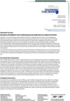 (Stadtwerke Forchheim). Die Stadtwerke Forchheim haben ihr Car Sharing Netzwerk weiter ausgebaut. Am Heroldsbacher Bahnhof steht seit 2023 ein Elektroauto leihweise zur Verfügung. Damit kam eine zweite Station ins Portfolio der Stadtwerke Forchheim. Neben der bereits bestehenden am Forchheimer Hauptbahnhof, welche bereits im September eingeweiht wurde, ist es seit dem möglich, auch im Landkreis auf das Car Sharing Angebot zuzugreifen.