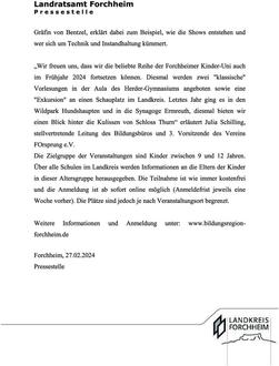 Forchheim (LRA-FO). Auch für das Frühjahr 2024 hat das Bildungsbüro gemeinsam mit seinen Kooperationspartnern - darunter FOrsprung e.V. - wieder drei Termine im Rahmen der Forchheimer Kinder-Uni organisiert: Den Auftakt macht Prof. Dr. Voll am 13. April. Er erläutert, wieso körperliche Aktivität Einfluss auf die geistige Leistungsfähigkeit hat und beantwortet damit aus wissenschaftlicher Sicht die Frage: Macht Sport schlau? Eine Woche später, am 20. April, wirft Dr. Angela Kropp einen Blick auf alles, was vor unserer Haustür krabbelt und wächst. Sie geht der Frage nach, warum es wichtig ist, die Artenvielfalt bei uns zu schützen und was jeder dazu beitragen kann. Am 27. April können interessierte Kinder einen Blick hinter die Kulissen des Freizeitparks Schloss Thurn werfen. Die Geschäftsführerin des Parks, Hana Gräfin von Bentzel, erklärt dabei zum Beispiel, wie die Shows entstehen und wer sich um Technik und Instandhaltung kümmert. „Wir freuen uns, dass wir die beliebte Reihe der Forchheimer Kinder-Uni auch im Frühjahr 2024 fortsetzen können. Diesmal werden zwei "klassische" Vorlesungen in der Aula des Herder-Gymnasiums angeboten sowie eine "Exkursion" an einen Schauplatz im Landkreis. Letztes Jahr ging es in den Wildpark Hundshaupten und in die Synagoge Ermreuth, diesmal bieten wir einen Blick hinter die Kulissen von Schloss Thurn“ erläutert Julia Schilling, stellvertretende Leitung des Bildungsbüros und 3. Vorsitzende des Vereins FOrsprung e.V. Die Zielgruppe der Veranstaltungen sind Kinder zwischen 9 und 12 Jahren. Über alle Schulen im Landkreis werden Informationen an die Eltern der Kinder in dieser Altersgruppe herausgegeben. Die Teilnahme ist wie immer kostenfrei und die Anmeldung ist ab sofort online möglich (Anmeldefrist jeweils eine Woche vorher). Die Plätze sind jedoch je nach Veranstaltungsort begrenzt. Weitere Informationen und Anmeldung unter: www.bildungsregion- forchheim.de.