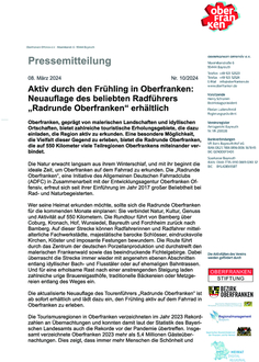 (Oberfranken Offensiv e.V.). Oberfranken, geprägt von malerischen Landschaften und idyllischen Ortschaften, bietet zahlreiche touristische Erholungsgebiete, die dazu einladen, die Region aktiv zu erkunden. Jetzt ist die ideale Zeit, um Oberfranken auf dem Fahrrad zu entdecken. Die „Radrunde Oberfranken“, eine Initiative des Allgemeinen Deutschen Fahrradclubs (ADFC) in Zusammenarbeit mit der Entwicklungsagentur Oberfranken Offensiv, erfreut sich seit ihrer Einführung im Jahr 2017 großer Beliebtheit bei Rad- und Naturbegeisterten. Wer seine Heimat erkunden möchte, sollte sich die Radrunde Oberfranken für die kommenden Monate einplanen: Sie verbindet Natur, Kultur, Genuss und Aktivität auf 550 Kilometern. Die Rundtour führt von Bamberg über Coburg, Kronach, Hof, Wunsiedel, Bayreuth und Forchheim zurück nach Bamberg. Auf dieser Strecke können Radfahrerinnen und Radfahrer mittelalterliche Fachwerkstädte, majestätische barocke Schlösser, eindrucksvolle Kirchen, Klöster und imposante Festungen bewundern. Die Route führt durch das Zentrum der deutschen Porzellanproduktion und durchstreift den malerischen Frankenwald sowie das beeindruckende Fichtelgebirge. Dabei überrascht die Strecke immer wieder mit angenehm ebenen Abschnitten entlang idyllischer Bach- und Flusstäler oder auf ehemaligen Bahntrassen. Und für eine erholsame Rast nach einer anstrengenden Steigung laden zahlreiche urige Brauereigasthöfe, traditionelle Bäckereien oder Metzge- reien entlang des Weges ein. Die aktualisierte Neuauflage des Tourenführers „Radrunde Oberfranken“ ist ist überall im Buchhandel erhältlich. ISBN: 978-3-85000-785-6, Preis: € 15,90.