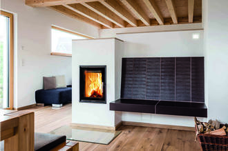 Das Prinzip ist ebenso einfach wie überzeugend: Im Kachelofeneinsatz wird kostengünstig und CO2-neutral Holz verbrannt. Die dabei entstehende Strahlungswärme geht direkt in den Wohnraum, während die heißen Rauchgase nicht sofort in den Schornstein geleitet werden, sondern einen Wasser-Wärmetauscher erhitzen. Bei dieser Technologie wird meist nur ein kleiner Teil der Wärme in den Aufstellraum abgegeben. Die Energie wird größtenteils über den Wassertauscher und Pufferspeicher in das bestehende Heizsystem eingespeist. Die Wärme des Feuers wird im ganzen Haus über Heizkörper oder die Fußbodenheizung verteilt und warmes Wasser in Küche und Bad zur Verfügung gestellt. Wird zu einem späteren Zeitpunkt eine Solaranlage oder Wärmepumpe installiert, ist zudem der notwendige Pufferspeicher bereits vorhanden.