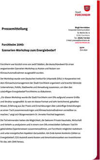 (Stadt Forchheim). Forchheim war kürzlich eine von zwölf Städten, die deutschlandweit für einen wegweisenden Szenarien-Workshop zu Kosten und Nutzen von Klimaschutzmaßnahmen ausgewählt wurden. Der Workshop wurde vom Deutschen Institut für Urbanistik (Difu) in Kooperation mit dem Klimaschutzmanagement der Stadt Forchheim organisiert und brachte führende Unternehmen, Politik, Stadtwerke und Verwaltung zusammen, um über den zukünftigen Energiebedarf Forchheims zu diskutieren. „Für diesen Workshop wurde die Stadt Forchheim vom Difu aufgrund unserer Größe und Struktur ausgewählt. Es war ein klasse Format und sehr bereichernd, geballtes Wissen, Erfahrung aus der Praxis und Einschätzungen über zukünftige Entwicklungen an einen Tisch zusammenzubringen und Klimaschutzmaßnahmen vorstellbar zu machen,“ zeigt sich Bürgermeisterin Dr. Annette Prechtel begeistert. Die Teilnehmenden hatten die Möglichkeit, die Sektoren Private Haushalte, Wirtschaft und Verkehr zu analysieren und in einem vom Difu entwickelten Software-Tool ihr gebündeltes Expertenwissen zusammenzuführen, um Forchheim möglichst realistisch und unter energetischen Aspekten darzustellen. Am Ende kamen konkrete Zahlen zu Energiebedarf, CO2-Ausstoß sowie Kosten und Amortisationszeiten von Investitionen für das Jahr 2040 heraus. „Die Diskussionen waren sehr konstruktiv und zeigten das Engagement für den Klimaschutz. Durch diesen Workshop konnten Sichtweisen aus den verschiedensten Bereichen zusammengebracht werden“, so Klimaschutzmanagerin Elisa Rittmeier, die sich freut, auch in Zukunft in dieser Runde gemeinsam Projekte im Bereich des Klimaschutzes voranzutreiben. Interessierte Bürgerinnen und Bürger können die Ergebnisse des Workshops per E-Mail an klimaschutz@forchheim.de anfordern.
