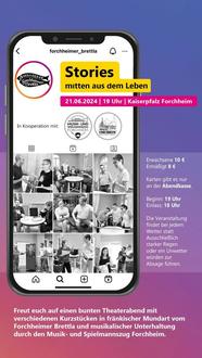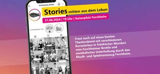 (Forchheimer Brettla). Das Forchheimer Brettla lädt herzlich zum Open Air Theaterabend am Freitag, 21. Juni 2024, um 19 Uhr im Innenhof der historischen Kaiserpfalz ein. Unsere unterhaltsamen Kurzstücke in fränkischer Mundart stehen dieses Jahr unter dem Motto „Stories mitten aus dem Leben“ und werden umrahmt durch die Blasmusikgruppe des Musik- und Spielmannszugs Forchheim. Einlass is ab 18 Uhr. Karten gibt es nur an der Abendkasse. Preise: Erwachsene 10,00 Euro, Schüler Studenten und Menschen mit Behinderung 8,00 Euro. Natürlich bieten wir auch wieder Brotzeit und Getränke an. Wir spielen bei jedem Wetter. Ausschließlich starker Regen oder ein Unwetter würden zur Absage führen. Wir freuen uns, Sie wieder bei uns begrüßen zu dürfen und wünschen einen schönen Theaterabend.