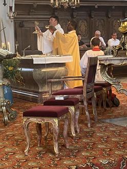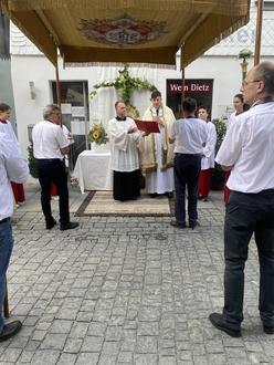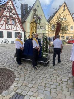 Forchheim (E. Nöth). Domvikar und Diözesanjugendseelsorger Gerd Richard Neumeier zelebrierte gemeinsam mit Pfarrer Obiwulu am Festtag der Leiblichen Aufnahme Maria in den Himmel, den Gottesdienst in der Pfarrkirche St. Martin. Die anschließende traditionelle Prozession führte durch die Straßen der Altstadt. An vier Stationen des Weges, vor dem Weinhaus Dietz, vor Feinkost Karnbaum, vor dem Haus der Familie Gebhardt in der Hauptstraße und vor der Metzgerei Sendner, waren Altäre aufgebaut, an denen Fürbitte gehalten wurde. Viele Gemeinschaften der Pfarrei beteiligten sich an der Marienprozession. Die Stadt Forchheim wurde durch Bgm. Udo Schönfelder vertreten.