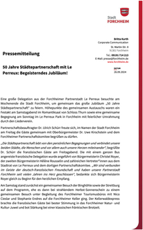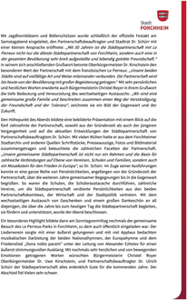 (Stadt Forchheim). Eine große Delegation aus der Forchheimer Partnerstadt Le Perreux besuchteim September die Stadt Forchheim, um gemeinsam das große Jubiläum „50 Jahre Städtepartnerschaft“ zu feiern. Höhepunkte des gemeinsamen Austauschs waren ein Festakt am Samstagabend im Romantiksaal von Schloss Thurn sowie eine gemeinsame Begegnung am Sonntag im Le Perreux Park in Forchheim mit feierlicher Umrahmung durch den Liederverein. Partnerschaftsbeauftragter Dr. Ulrich Schürr freute sich, im Namen der Stadt Forchheim am Freitag die Gäste gemeinsam mit Oberbürgermeister Dr. Uwe Kirschstein und dem Forchheimer Partnerschaftskomitee begrüßen zu dürfen. „Die Städtepartnerschaft lebt von den persönlichen Begegnungen und verbindet unsere beiden Städte, die Menschen und vor allem auch unsere Herzen miteinander“, begrüßte Dr. Schürr die französischen Gäste am Freitagabend. Die mit einem ganzen Bus angereiste französische Delegation wurde angeführt von Bürgermeisterin Christel Royer, der zweiten Bürgermeisterin Hélène Rousselin und zahlreichen Vertreter*innen aus dem Stadtrat von Le Perreux und dem dortigen Partnerschaftskomitee. „Wir sind verbunden im Geiste der deutsch-französischen Freundschaft und haben unsere Partnerstadt Forchheim seit vielen Jahren ins Herz geschlossen“, bedankte sich Bürgermeisterin Royer gleich zu Beginn für den herzlichen Empfang. Am Samstag stand zunächst ein gemeinsamer Besuch der Binghöhle sowie der Streitburg auf dem Programm, ehe es dann bei strahlendem Herbst-Sonnenschein zu einem gemeinsamen Besuch unter Begleitung des Forchheimer Tourismusbüros mit Nico Cieslar und Stephanie Endres auf die Forchheimer Keller ging. Der Kellerwaldexpress brachte die französischen Gäste bei bester Stimmung in das Forchheimer Natur- und Kultur-Juwel und bot Stärkung bei einer klassischen fränkischen Brotzeit. Mit Jagdhornbläsern und Böllerschützen wurde schließlich der offizielle Festakt am Samstagabend eingeleitet, den Partnerschaftsbeauftragter und Stadtrat Dr. Schürr mit einer kleinen Ansprache eröffnete: „Mit 50 Jahren ist die Städtepartnerschaft mit Le Perreux nicht nur die älteste Städtepartnerschaft von Forchheim, sondern auch eine in der gesamten Bevölkerung sehr breit aufgestellte und lebendig gelebte Freundschaft.“ In seinem sich anschließenden Grußwort betonte Oberbürgermeister Dr. Kirschstein den besonderen Wert der Partnerschaft mit dem französischen Le Perreux: „Unsere beiden Städte sind auf vielfältige Art und Weise miteinander verbunden. Die Partnerschaft wird bis heute von der Bevölkerung mit großer Begeisterung getragen.“ Mit sehr persönlichen und herzlichen Worten erwiderte auch Bürgermeisterin Christel Royer in ihrem Grußwort die tiefe Bedeutung und Verwurzelung des wechselseitigen Austauschs: „Wir sind eine gemeinsame große Familie und beschreiten zusammen einen Weg der Verständigung, der Freundschaft und der Toleranz“, zeichnete sie ein Bild der Gegenwart und der Zukunft. Den Höhepunkt des Abends bildete eine bebilderte Präsentation mit einem Blick auf die fünf Jahrzehnte der Partnerschaft, sowohl aus der Gründerzeit als auch der jüngeren Vergangenheit und auf die aktuellen Entwicklungen der Städtepartnerschaft von Partnerschaftsbeauftragtem Dr. Schürr. Mit vielen Mühen hatte er aus dem Forchheimer Stadtarchiv und anderen Quellen Schriftstücke, Presseauszüge, Fotos und Bildmaterial zusammengetragen und beleuchtete die zahlreichen Facetten der Partnerschaft. „Unsere gemeinsame Städtepartnerschaft ist nicht nur ein Rahmen und die Basis für zahlreiche Verbindungen auf Ebene von Vereinen, Schulen und Familien, sondern auch ein Mosaikstein für den Frieden in Europa“, so Dr. Schürr. Im Zuge seiner Ausführungen konnte er eine ganze Reihe von Persönlichkeiten, angefangen von der Gründerzeit der Partnerschaft, über die weiteren Jahre gemeinsamer Begegnungen bis in die Gegenwart begrüßen. So waren die Schulen, die Schüleraustausche durchführen, zahlreiche Vereine, um die Städtepartnerschaft verdiente Persönlichkeiten aus den beiden Partnerschaftskomitees, der Wirtschaft und der Stadtpolitik vertreten. Mit dem wechselseitigen Austausch von Geschenken und einem großen Dankeschön an all diejenigen, die über die Jahre bis zum heutigen Tag die Städtepartnerschaft begleiten, sie fördern und unterstützen, wurde der Abend beschlossen. Ein besonderes Highlight bildete dann am Sonntagvormittag nochmals der gemeinsame Besuch des Le Perreux-Parks in Forchheim, zu dem auch öffentlich eingeladen war. Der Liederverein sorgte mit einer äußerst gelungenen und mit viel Applaus bedachten musikalischen Darbietung der beiden Nationalhymnen, der Europahymne und dem Friedenslied „Dona nobis pacem“ unter der Leitung von Alexander Ezhelev für einen äußerst stimmungsvollen Ausklang. Mit nochmals sehr herzlichen und von bewegenden Emotionen getragenen Worten wünschten Bürgermeisterin Christel Royer Oberbürgermeister Dr. Uwe Kirschstein, und Partnerschaftsbeauftragter Dr. Ulrich Schürr der Städtepartnerschaft alles erdenklich Gute für die kommenden Jahre. Der Abschied fiel Vielen sehr schwer.