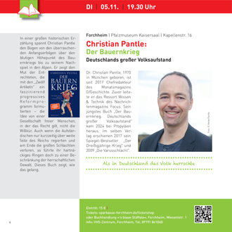 Ein besonderes Augenmerk liegt dieses Jahr auf den aktuellen Themen unserer Zeit. Der Journalist Alex Rühle erzählt in „Europa, wo bist du?“ von spannenden Begegnungen während seiner Reise in einem aufgewühlten Kontinent. Der erfolgreiche Buchautor und Chefredakteur von G/Geschichte Christian Pantle schildert in seinem neuen Buch „Der Bauernkrieg“ die Entstehung der modernen Idee einer Gesellschaft freier Menschen, in der das Recht gilt, nicht die Willkür. Und der beliebte Influencer und Aufklärer Ole Liebl entwirft eine neue radikale Vision von Freundschaft und Liebe.