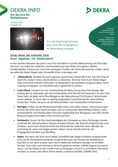 (DEKRA Info). In den dunklen Monaten des Jahres muss für Autofahrer in punkto Beleuchtung und Sicht alles stimmen, um selbst bei schlechten Sichtverhältnissen kein Risiko einzugehen. DEKRA Unfallanalytiker Thomas Gut nennt die wichtigsten Punkte, die Fahrende beachten sollten, damit sie selbst bei Nebel, Regen oder Schneefall sicher unterwegs sind.