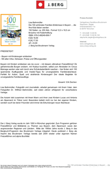 Lisa Bahnmüller – Die 100 schönsten Familien-Erlebnisse in Bayern ... die Ihre Kids lieben werden, 192 Seiten, ca. 250 Abb., Format 12,0 x 18,5 cm, ISBN: 978-3-86246-899-7, € [D] 16,99, J. Berg bei Bruckmann Verlag.