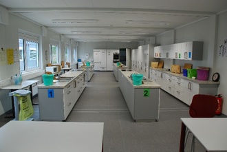 (Baiersdorf (S. Stahl). Nach dem großen Umzug in den Sommerferien 2024 hat sich die Schulfamilie der Mittelschule Baiersdorf in „ihrem Containerdorf“ inzwischen eingelebt. „ Es ist warm, man kann die Fenster öffnen und schließen, es gibt Rollos gegen die Sonneneinstrahlung, die Toiletten funktionieren…was will man mehr?! “ Solche und ähnliche Kommentare hörte man nach dem Umzug in die beiden Containergebäude auf dem ehemaligen Sportplatz hinter dem Schulhaus, das aktuell generalsaniert wird. All die Mängel, die in den letzten Jahren im alten Schulhaus vermehrt aufgetreten sind, konnten sich in den Containern lösen lassen, so dass ein Schulbetrieb ohne Probleme stattfinden kann. Es gibt auch hier alle Räume, die für den Schulalltag - und vor allem für die Vorbereitung auf die Schulabschlüsse der 9. und 10. Klassen - von Nöten sind: eine Schulküche, einen Werkraum, zwei Computerräume und weitere Fachräume. Das Mobiliar, die digitalen Tafeln und der Großteil der Einrichtung der Fachräume wurden mit umgezogen, so dass es keinerlei Einschränkungen gibt - im Gegenteil: Alle fühlen sich gut versorgt und wohl in den „neuen Metallboxen“. „ Manchmal wackelt die Wand oder die Decke etwas, wenn die Waschmaschine schleudert “ hört man eine Schülerin sagen, „ Eigentlich könnten wir auch hierbleiben. “ meint eine andere. „ Geht man durch die hellen Gänge, meint man gar nicht, dass man in einem Container ist. “ bemerkt ein Elternteil. Alles in allem herrscht also Zufriedenheit mit der Interimslösung. Die NOCH unschöne Außenanlage um die Container herum wird seit dem Frühjahr begrünt, sodass auch hier dann hoffentlich mehr Grün als Erde zu sehen sein wird. Büsche und Heckenpflanzen wurden schon angepflanzt. Einzig allein für den Chemie- und den Physikunterricht müssen wir ein wenig improvisieren, da es für Schüler- und Lehrerversuche keinen Abzug und die geforderten Schutzmaßnahmen gibt. Hier hat sich jedoch die Feuerwehr angeboten, auszuhelfen, wenn man es im Unterricht mal „richtig knallen lassen will“. Das heißt auch hier ist Abhilfe für die zwei Jahre Übergang geschaffen. Wir hoffen sehr, dass auch die zu erwartenden sommerlichen Temperaturen unseren guten Eindruck nicht trüben werden und den Schulalltag nicht zu sehr negativ beeinträchtigen - 29 Grad morgens um 7.30 Uhr in unserem alten „Glas-Klassenzimmer“ im OG sind zu schlagen. Wir sind gespannt, aber guter Dinge! Mit Spannung beobachten wir außerdem die Bauarbeiten am alten Schulhaus gegenüber und sehen inzwischen auch von außen die täglichen Fortschritte. Noch stört der Baulärm von drüben den Schulalltag hier nicht.