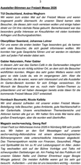 Freizeit Messe-Projektleiter Maik Heißer steckt mit seinem Team bereits in den Vorbereitungen für die kommende Ausgabe der Freizeit Messe: „Die Besucher haben uns darin bestätigt, dass der Themenmix der Freizeit Messe genau das ist, was zum Frühlingsbeginn gefragt ist. Wir führen bereits mit den Ausstellern und Partnern in allen Bereichen Gespräche, um die Freizeit Messe 2027 vorzubereiten. So gibt es Planungen, im Gartenbereich zusätzliche Angebote zu präsentieren.“