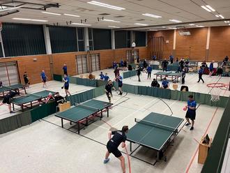 Insgesamt konnten in der Mehrzweckhalle bis zu 16 Tischtennisplatten aufgebaut werden.