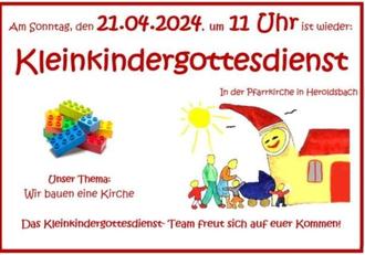 | 11.00 | Heroldsbach | Kleinkindergottesdienst- „Wir bauen eine Kirche“ |