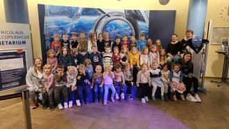 Mit Hilfe von durch den Raum schwebenden Seifenblasen und weiteren Seifenblasenexperimenten zogen wir Vergleiche zur Schwerelosigkeit im Weltall und philosophierten über „Planetenoberflächen und Landschaften“. So kamen wir auf die Idee einen Ausflug ins Planetarium nach Nürnberg zu unternehmen. Am Mittwoch, den 10.04.2024 war es dann endlich soweit und alle Käfer und Schmetterlinge, ab 3 Jahren, machten sich mit dem Bus auf den Weg dorthin. Schon die Fahrt durch die Großstadt war ein Erlebnis. Am Planetarium angekommen wurden wir bereits im Eingangsbereich von einem „Alian“ begrüßt und konnten auf einem Bildschirm im Foyer sehen wie sich Astronauten in ihrem Raumschiff bewegen. Wie es der Zufall so wollte griffen, in dieser Dokumentation, auch die Astronauten auf Seifenblasen zurück. Im eigentlichen Planetarium, mit seiner riesigen halbrunden Kuppel, entführte uns der kleine Mondbär hinaus in die Weiten des Weltalls. Gemeinsam mit seinen beiden Freundinnen flog er im Raumschiff durchs Sonnensystem. Dabei lernten wir den Mond, Merkur, Venus und andere Planeten kennen. Auch ein heißer Besuch auf der Sonne war dabei. Begleitet wurde die Vorstellung von vielen „Aaahs“ und „Ooohs“ der Kinder. Abschließend gab es einen Blick in den aktuellen Sternenhimmel, mit einer kurzen Einführung zu verschiedenen Sternbildern, wie z.B. Großer und Kleiner Wagen,… und dem Polarstern. Noch im Bann des Erlebten ging es mit dem Bus wieder zurück nach Wimmelbach. Mal sehen, wie lange uns diese „außerirdische Reise“ noch beschäftigen wird!? Was sich aber schon jetzt sagen lässt: „Auch bisher