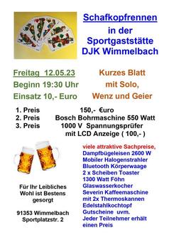 Schafkopfrennen am 12.05.2023 ab 19.30 Uhr im Sportheim.