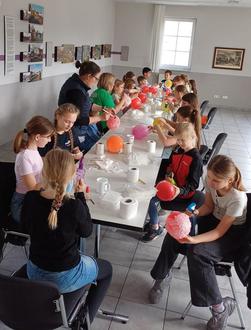Jeder Strolch bekam einen Luftballon und durfte diesen aufblasen. Anschließend wurde das von den Kindern mitgebrachte Toilettenpapier in Stücke gerissen, um den Luftballon gewickelt und mit einem Wasserspritzer nass gespritzt. Dies wurde so oft wiederholt, bis der Luftballon mit mehreren Schichten umwickelt war. Zum Schluss ist dieser noch mit einer Serviette mit Ostermotiv verziert und zum Trocknen aufgehängt worden.