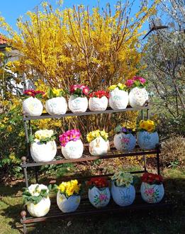 Nach ein paar Tagen waren alle trocken und der Luftballon wurde zum Platzen gebracht. Die fertigen Nester sind mit einer Blume geschmückt worden und die Strolche konnten ihre Oster-Blumennester bei Tanja abholen.