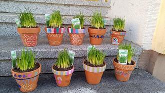 Für unser zweites Treffen am 6. Mai haben wir uns kurzfristig für eine kleine Aktion entschieden. Nachdem noch etwas Unkraut gezupft und ein bisschen was angesät wurde, durften die Kinder Tontöpfe bemalen, mit Schnittlauch bepflanzen und für ihre Mamas zum Muttertag mit nach Hause nehmen.