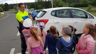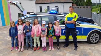 Klar aber auch, dass das Thema: „Aufgepasst – Augen auf im Straßenverkehr“ noch etwas einprägsamer wird und nachhaltiger ist wenn man es gemeinsam mit einem echten Polizisten üben kann.
