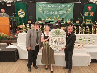 Am Sonntag, den 21.05.2023 fand der Festumzug zum 100-jährigen Vereinsjubiläum von Wilhelm Tell Gosberg statt, bei dem wir in unserer Tracht mitgelaufen sind. Anschließend fand die große Preisverteilung vom Preisschießen statt. Gleich zu Beginn wurde die Gewinnerin der Jubiläumsscheibe bekannt gegeben. Diese hat sich Emma Ruppert mit einem 7,1 Teiler gesichert. Herzlichen Glückwunsch Emma!