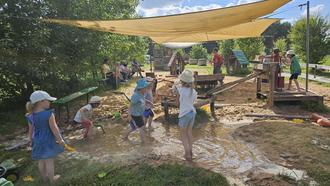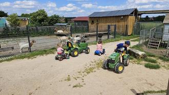 Aber schließlich gab es noch viel mehr zu entdecken, und während die Einen noch auf der Bobycarstrecke, mit dem Buldog, auf der Hüpfburg oder den Elektroautos Zugange waren, beschäftigten sich die Anderen auf dem Spielplatz und vor allem beim Matschen mit Wasser und Sand. Das ein- oder andere Kind wagte sich auf ein Pony und zeigte dabei meist mehr Mut, als ihre Eltern beim Führen dieser.