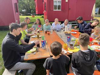 Zudem nutzten die Jugendlichen die riesige Reifenrutsche und die verschiedenen Trampolins auf der Anlage. Da das Wetter großartig war, kühlten sich alle immer wieder im glasklaren Steinberger See ab. Auch eine Tretbootfahrt auf zwei Booten mit integrierten Rutschen durfte natürlich nicht fehlen. Geschlafen wurde in Bauwägen, die zu Schlafwägen umfunktioniert und mit jeweils 3 Stockbetten versehen waren. Am letzten Abend gab es dann am Lagerfeuer die Siegerehrung aus den Teamwettkämpfen. Die Entscheidung war so knapp, dass am Ende erst eine Schätzfrage die Entscheidung über den ersten Platz brachte. Lukas Kandziora, Olivia Kellner und Franca Buschner siegten nur ganz knapp vor Benjamin Peggau, Sophie Knecht und Samuel Wolf. Nach einem letzten morgendlichen Abstecher in den See, ging es dann für alle am Sonntag wieder zurück nach Hause(n).