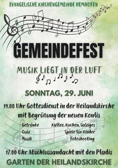 | 14:00 Uhr | Gottesdienst zum Gemeindefest und Vorstellung neuer Konfirmandinnen und Konfirmanden in der Heilandskirche Hemhofen (Pfarrerin Christiane Börstinghaus) |