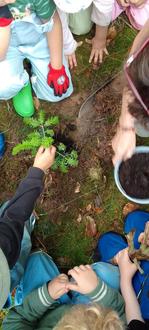 iora. Im Wald von Martin Heilmann verbrachten wir gemeinsam einen Tag. Für unser Frühstück bauten wir uns ein gemütliches Waldsofa aus Ästen. Es waren so viele Schnecken unterwegs, diese konnten wir gut beobachten. Wir haben auch andere kleine Lebewesen entdeckt und nach deren Namen nachgeschlagen. Wir waren gemeinsam in der Baumschule und haben verschiedene Baumarten kennengelernt.