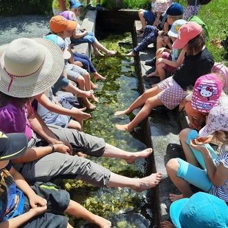Zum Abschluss des Kindergartenjahres war noch einmal Wandern angesagt. Zum Ziel hatten wir uns den Spielplatz in Oesdorf gesetzt. Pünktlich ging es morgens, bei noch kühlen Temperaturen, los. Schon auf dem 1. Feld entdeckten wir jede Menge Strohballen die mit vereinten Kräften erst miteinander und dann in 2 Mannschaften gegeneinander gerollt wurden. Urzeitlich wurde es beim Suchen von Fossilien. Muscheln, Teufelsfinger und sogar eine Muschelschale, fest mit dem Stein verbunden, wurden entdeckt. Weiter ging es bergauf und bergab durch den kühlen Wald bis nach Oesdorf. Begleitet wurden wir, ganz idyllisch, vom Vogelgezwitscher und leider auch den Spuren von zweibeinigen „Müllschweinen“. Einen Zwischenstopp mit Brotzeit legten wir am Waldkreuz ein. Kaum verließen wir den Wald hatte uns die Hitze eingeholt und alle waren froh als wir im Schatten des Spielplatzes ankamen. Abkühlung wollten wir uns am Oesdorfer Dorfbrunnen verschaffen, was aber nicht gelang da er versiegt war - Enttäuschung machte sich breit! Glücklicherweise konnten sich die müden Kinderfüße bei einem Fußbad an der alten Viehtränke doch noch erholen, wenngleich manch einer das Fußbad mit einem Vollbad verwechselte. Alles halb so schlimm, da die Sonne alles in Windeseile trocknete. Nach einem nochmaligen Spielplatzbesuch und einer erneuten Brotzeit ging es, Gott sei es gedankt, mit dem Bus zurück nach Wimmelbach.