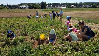 Wir haben uns am Rathaus in Hausen getroffen. Familie Singer hat uns erlaubt auf einem ihrer Felder Kartoffeln zu ernten. Mit Hacken und Eimern bewaffnet machten sich die Kinder auf den Weg. Dort angekommen wurde fleißig nach Kartoffeln gegraben und diese in den Eimern eingesammelt.