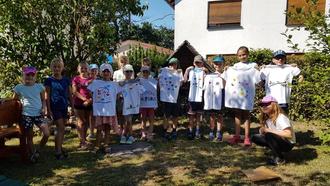 Jedes Kind bekam ein T-Shirt. Mit Pinseln und Farbe wurde der Kartoffelstempel bemalt und damit konnte dann das T-Shirt bedruckt werden. Voller Stolz durften die Kinder ihr neues Kleidungsstück und wer wollte auch seine geschnitzten Stempel mit nach Hause nehmen.