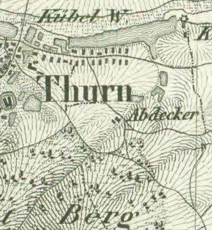 Als ersten nachweisbaren Abdecker konnte ich in den Hausener Pfarrmatrikeln am 21. Juli 1817 den Namen Paulus Hagen finden, der an diesem Tag Maria Barbara Bäck, die Tochter des Abdeckers von Untermembach heiratete. Aufgrund des Außenseitertums der Abdecker scheinen diese also häufiger untereinander geheiratet zu haben. Der Eintrag enthält als Vorgänger des Abdeckers von Thurn auch den Namen seines Vaters Andreas Hagen, so dass die Familie Hagen bereits vor 1817 dort das Abdecker-Gewerbe betrieb. Die Familie Hagen scheint auch in den Jahrzehnten danach die Abdeckerei von Thurn unterhalten zu haben. Denn erst am 20. Dezember 1889 ist in einem Hausener Gemeindebuch vermerkt, dass ein Georg Braun Nachfolger des Thurner Abdeckers Paulus Hagen (wohl ein Nachkomme des gleichnamigen Abdeckers von 1817) wurde.