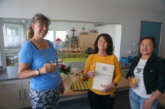 Zum 25-jährigen Dienstjubiläum konnte unsere Kita-Beauftragte Frau Monika Buchheim unserer Reinigungskraft Frau Renate Baumann, der guten Fee im Haus, in einer kleinen Feierstunde gratulieren. Frau Buchheim gratulierte auch im Namen von Pfarrer Klaus Weigand und der Kirchenstiftung Wimmelbach mit Ihren Mitgliedern. Kita Leitung Monika Köhler überbrachte ebenfalls Glückwünsche im Namen des ganzen Teams.