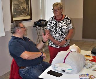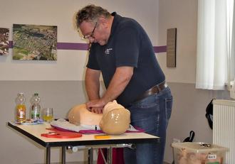 Herr Rudolph demonstrierte an einer Übungspuppe wie man sich im Ernstfall richtig verhält.