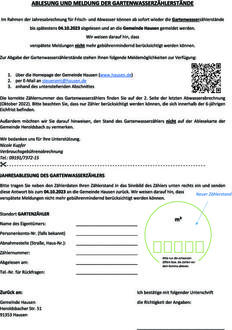 Ablesung und Meldung der Gartenwasserzählerstände 2023